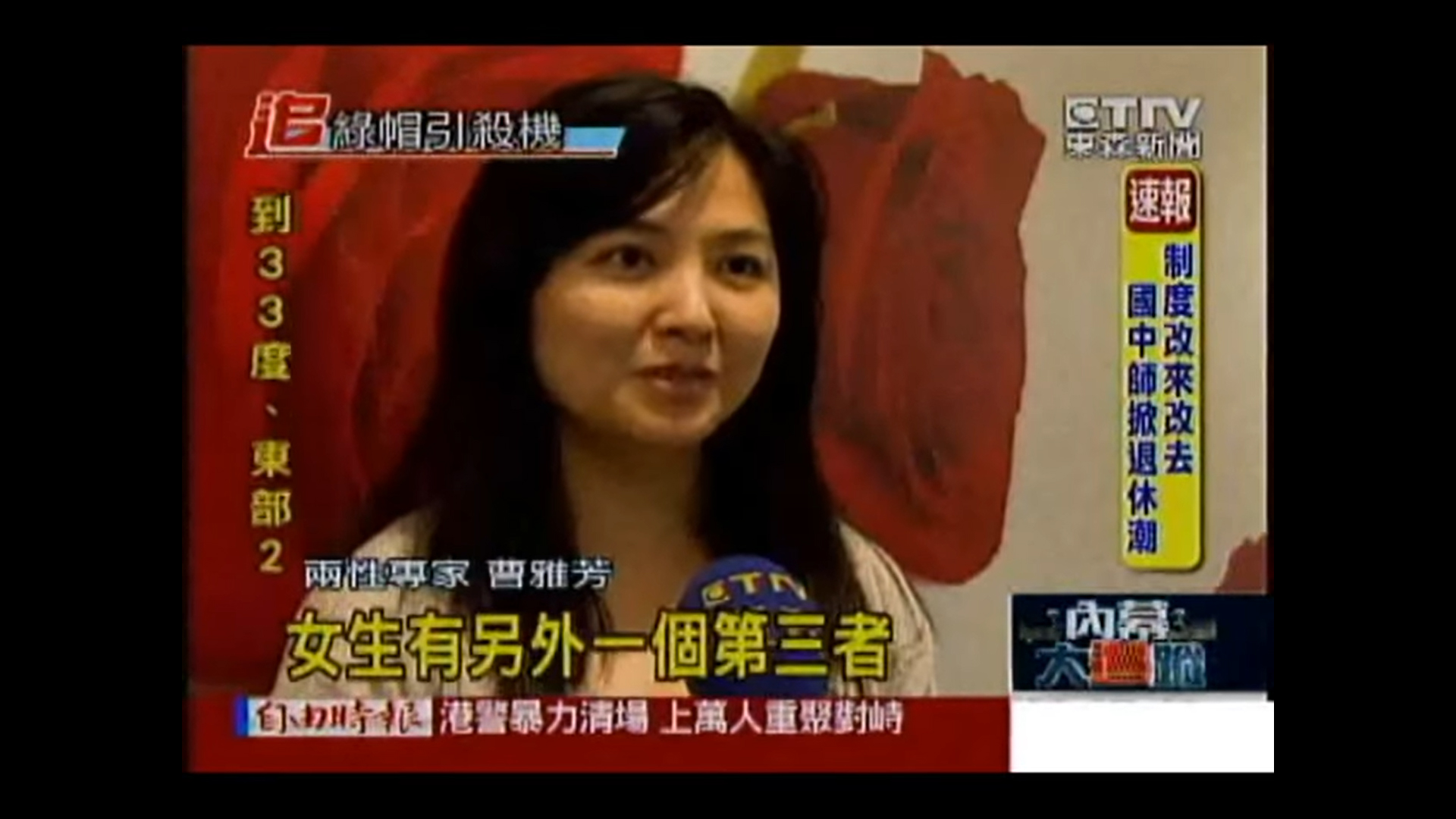 東森新聞_2014.09.28 到底為什麼,被劈腿引起這麼大的情緒反應,甚至自殘或是傷害對方,月老銀行兩性專家曹雅芳分析,被劈腿之後,最主要是當事人面子掛不住,鑽牛角尖,就容易情緒失控,因為男生...