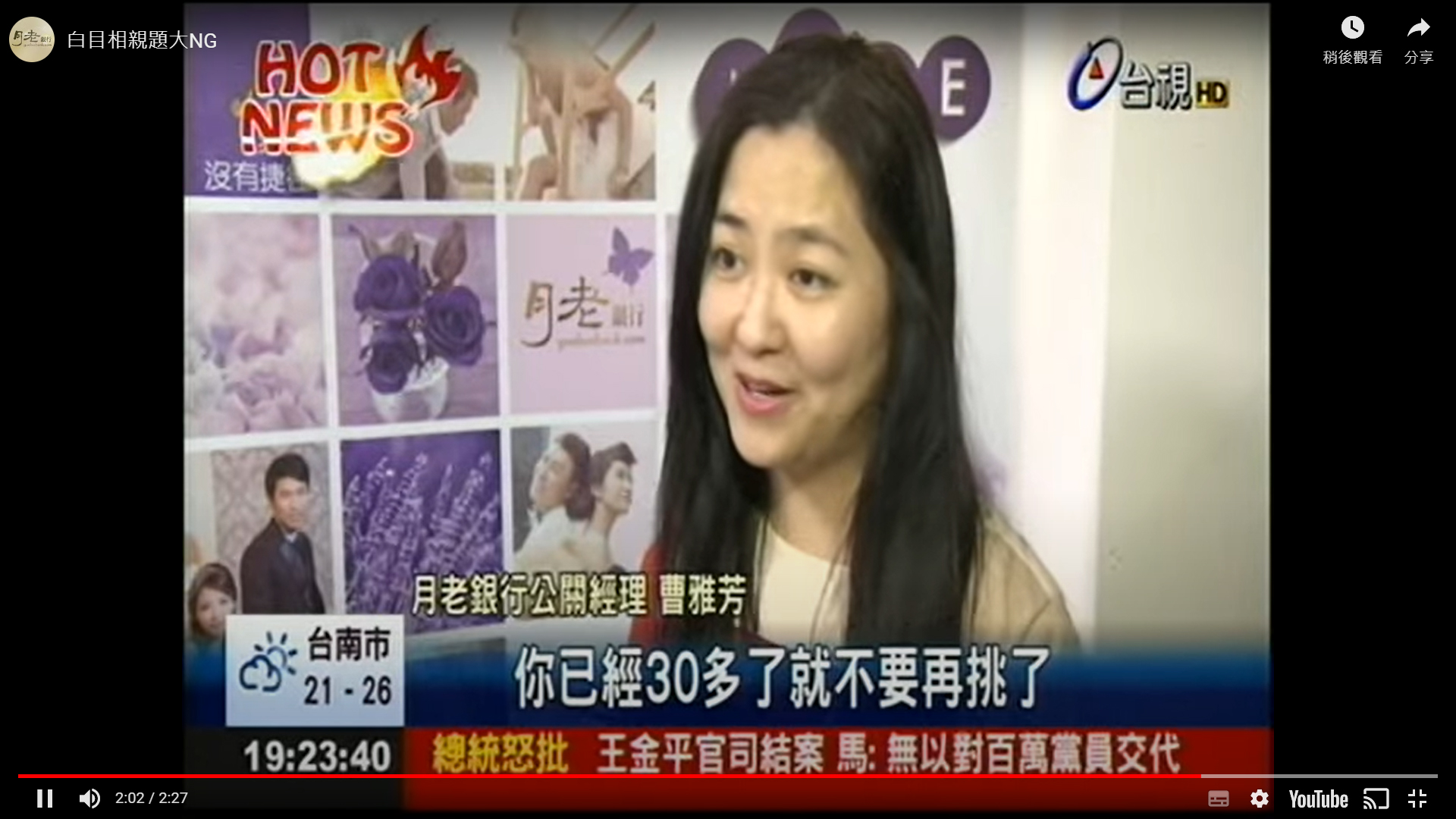 中天新聞_2015.03.17 月老銀行公關經理曹雅芳表示,因為公辦聯誼必須服務所有大眾,所以無法設太多嚴格規定 ...