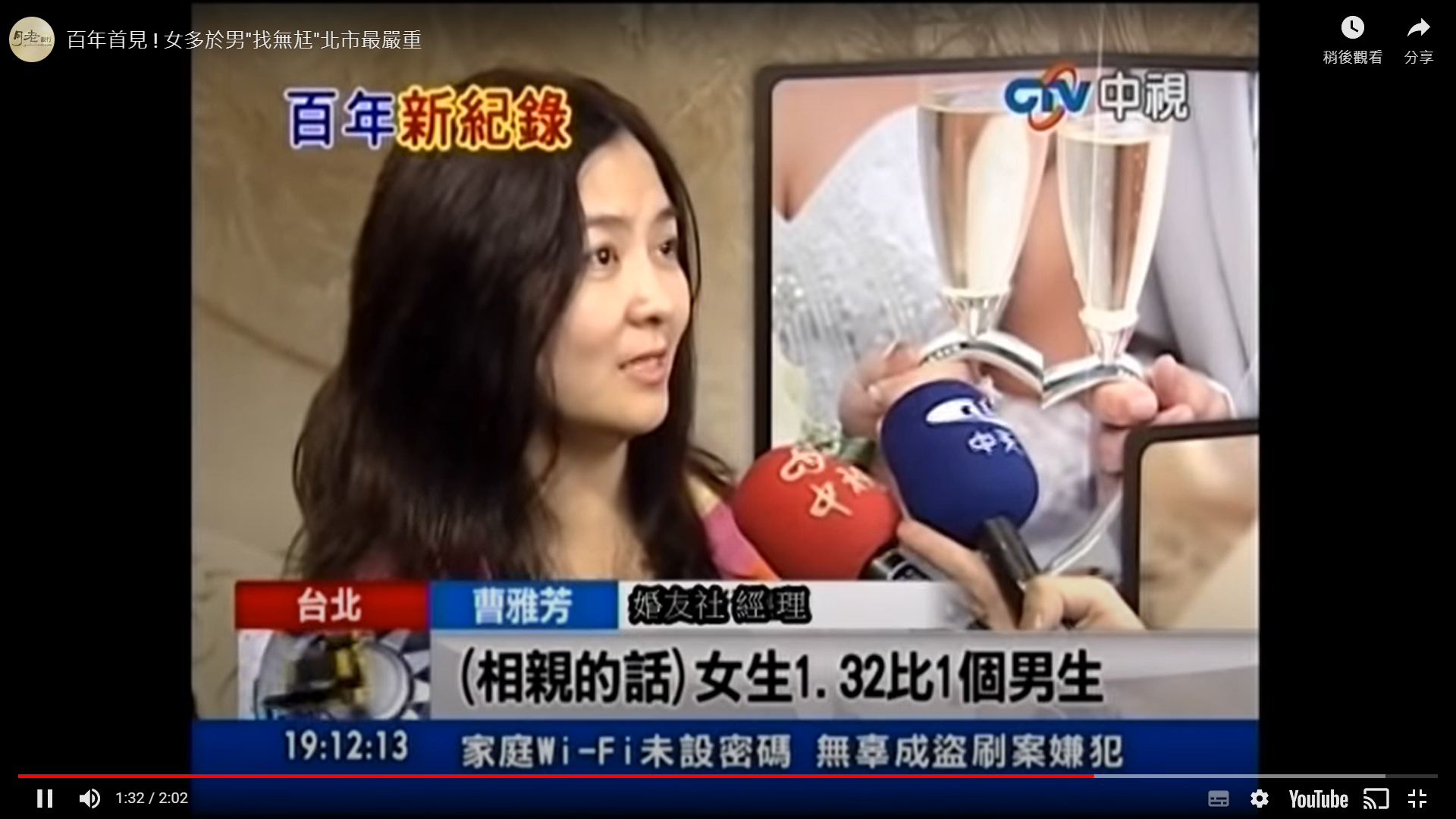 中視新聞_2013.12.05 月老銀行表示,到婚友社報名人數為女生1.32 比 1個男生 ...