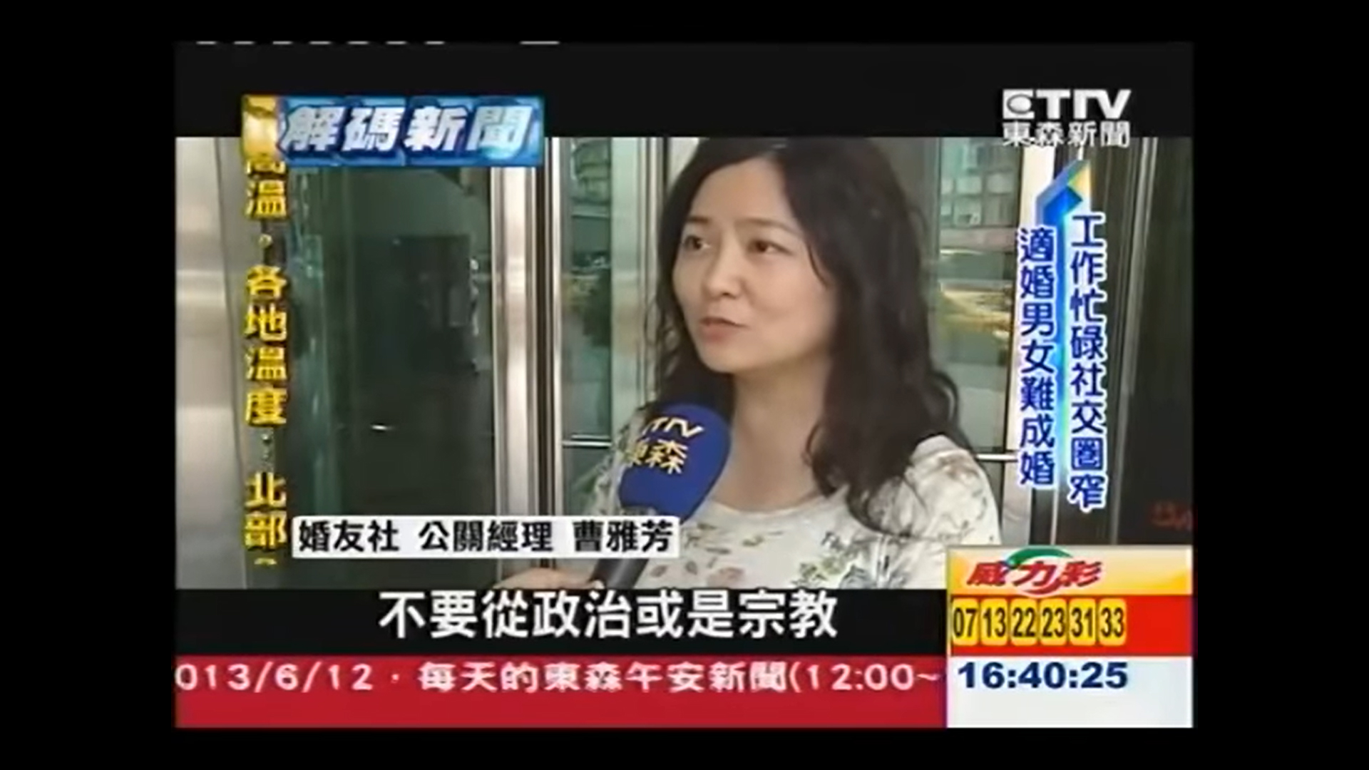 台視新聞_2013.12.05 月老銀行公關經理表示,報名聯誼活動的女生確實有比男性多 ...