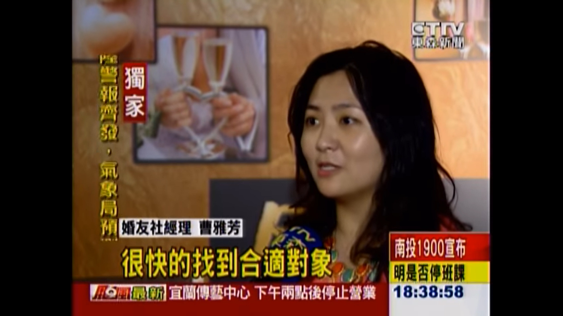 中天亞洲台[ 亞洲最錢線]_2013.08.27 月老銀行公關經理受邀至[亞洲最錢線]節目中,談及亞洲各國適婚男女現況,韓國姐弟戀、日本的單身寄生族及台灣與大陸的婚友社現況比較 ...